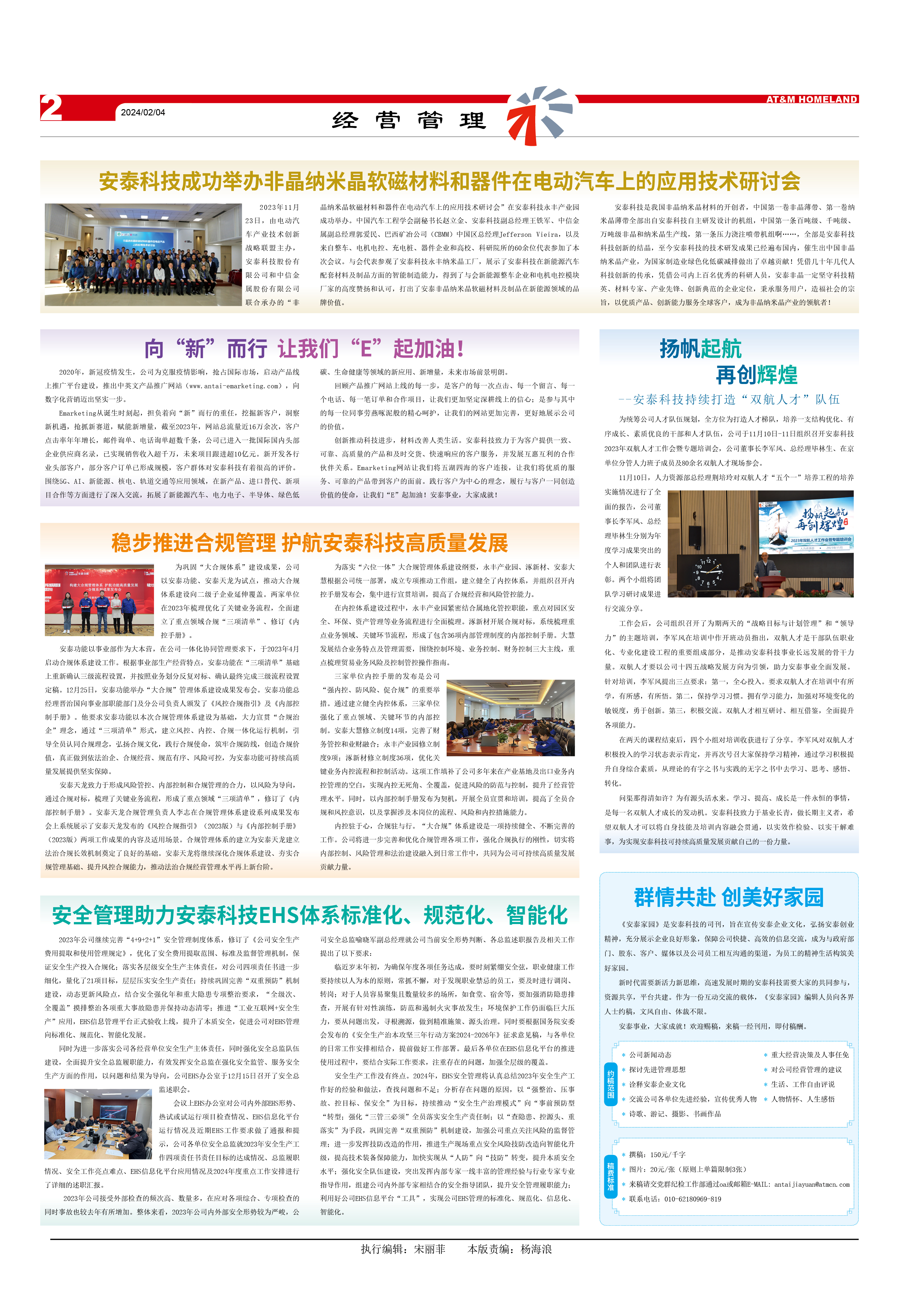 2023年11月23日,由電動汽車產(chǎn)業(yè)技術(shù)創(chuàng)新戰(zhàn)略聯(lián)盟主辦,安泰科技股份有限公司和中信金屬股份有限公司聯(lián)合承辦的“非晶納米晶軟磁材料和器件在電動汽車上的應(yīng)用技術(shù)研討會”在安泰科技永豐產(chǎn)業(yè)園成功舉辦。中國汽車工程學(xué)會副秘書長趙立金、安泰科技副總經(jīng)理王鐵軍、中信金屬副總經(jīng)理郭愛民、巴西礦冶公司(CBMM)中國區(qū)總經(jīng)理Jefferson Vieira,以及來自整車、電機(jī)電控、充電樁、器件企業(yè)和高校、科研院所的60余位代表參加了本次會議。與會代表參觀了安泰科技永豐納米晶工廠,展示了安泰科技在新能源汽車配套材料及制品方面的智能制造能力,得到了與會新能源整車企業(yè)和電機(jī)電控模塊廠家的高度贊揚(yáng)和認(rèn)可,打出了安泰非晶納米晶軟磁材料及制品在新能源領(lǐng)域的品牌價(jià)值。