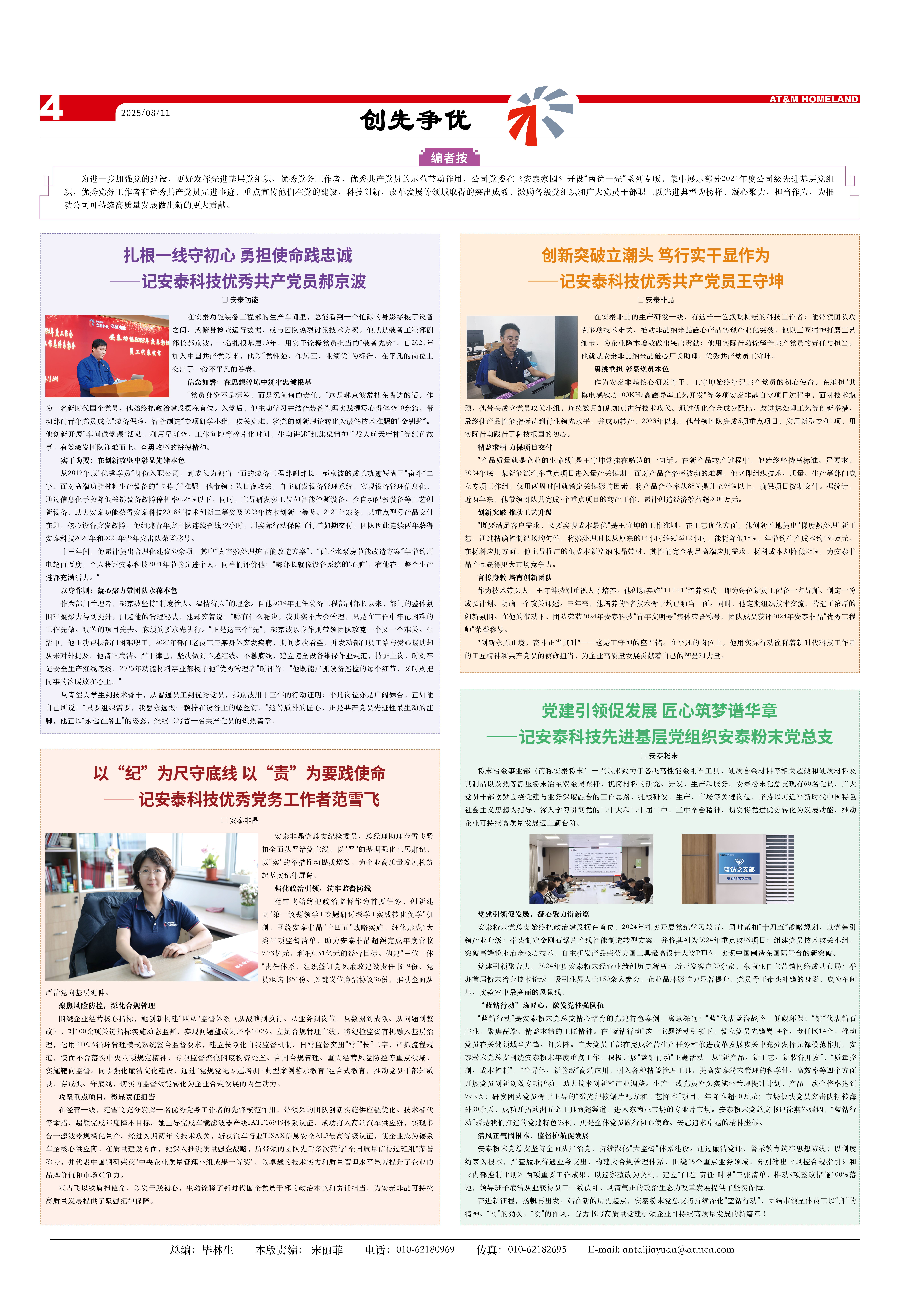 為進(jìn)一步加強(qiáng)黨的建設(shè),更好發(fā)揮先進(jìn)基層黨組織、優(yōu)秀黨務(wù)工作者、優(yōu)秀共產(chǎn)黨員的示范帶動作用,公司黨委在《安泰家園》開設(shè)“兩優(yōu)一先”系列專版,集中展示部分2024年度公司級先進(jìn)基層黨組織、優(yōu)秀黨務(wù)工作者和優(yōu)秀共產(chǎn)黨員先進(jìn)事跡,重點(diǎn)宣傳他們在黨的建設(shè)、科技創(chuàng)新、改革發(fā)展等領(lǐng)域取得的突出成效,激勵(lì)各級黨組織和廣大黨員干部職工以先進(jìn)典型為榜樣,凝心聚力、擔(dān)當(dāng)作為,為推動公司可持續(xù)高質(zhì)量發(fā)展做出新的更大貢獻(xiàn)。