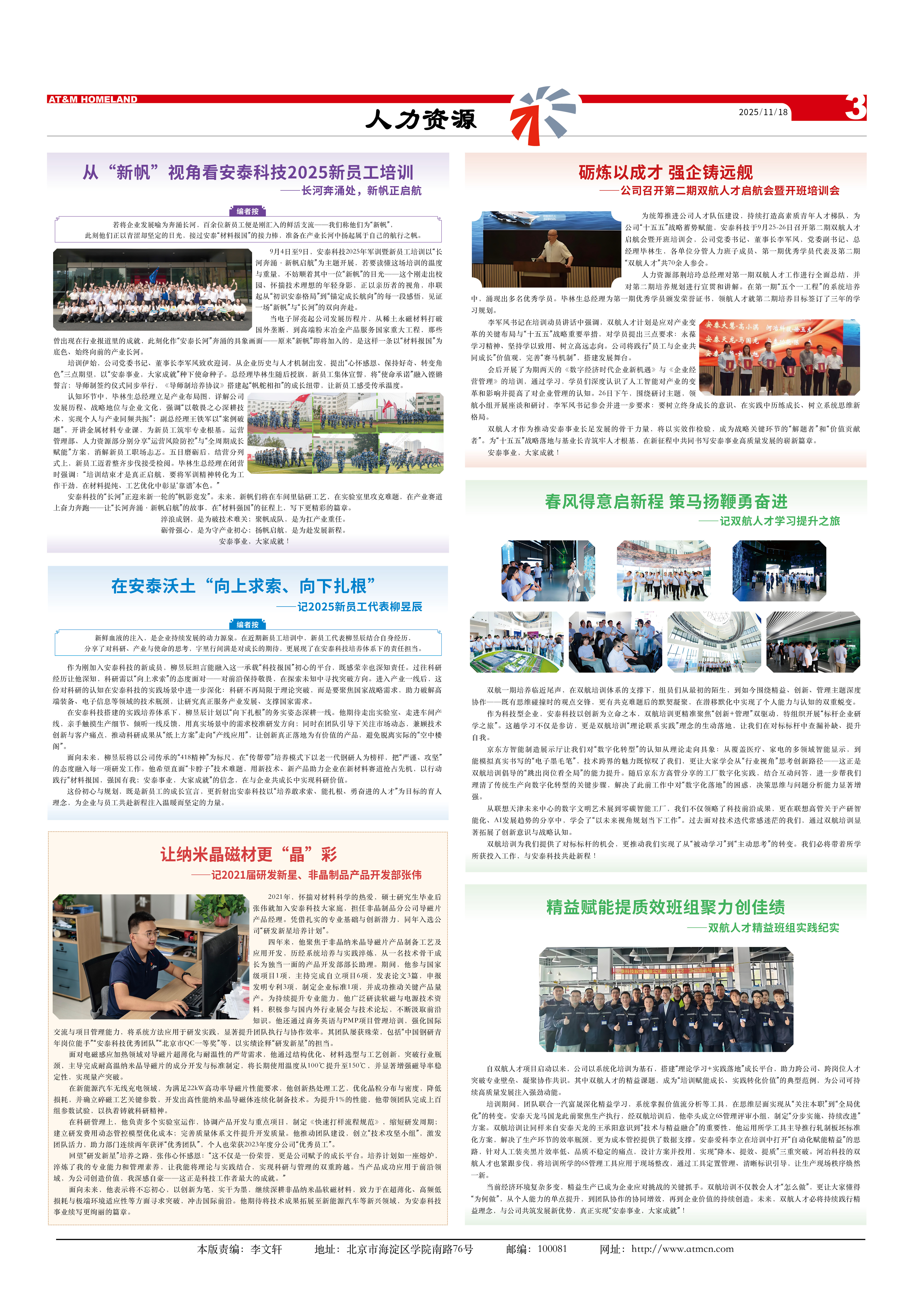 編者按:若將企業(yè)發(fā)展喻為奔涌長河,百余位新員工便是剛匯入的鮮活支流——我們稱他們?yōu)椤靶路?,此刻他們正以青澀卻堅(jiān)定的目光,接過安泰“材料報(bào)國”的接力棒,準(zhǔn)備在產(chǎn)業(yè)長河中揚(yáng)起屬于自己的航行之帆。
